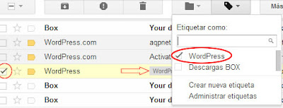 Una vez creada tu etiqueta lo siguiente sera etiquetar los mensajes que desees, para lo cual selecciona el mensaje a etiquetar y luego accede del mismo modo al icono de etiquetas de la parte superior de tus mensajes, donde aparecerá en la lista el nombre de la etiqueta que acabas de crear.