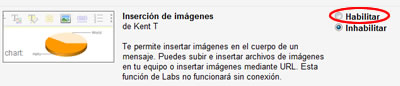 Tercero: Ahora en el menú que se muestra baja y ubica la opción de insertar imagen y click en la opción de Habilitar, baja hacia la parte inferior y guarda los cambios.